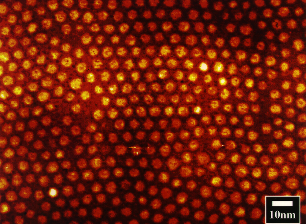 In their latest achievement, the Purdue researchers used a self-assembly process to build a single-layer film of electronically linked gold clusters that conducts current by single-electron tunneling, again operating at room temperature. When imaged in a transmission electron microscope, the LCN looks like a honeycomb.