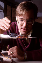 The research of Schneider and his colleague Steven Collicott, associate professor of aeronautics and astronautics, focuses on how air flows over and around objects that travel faster than the speed of sound, such as reconnaissance vehicles, missiles, supersonic passenger jets such as the Concorde, and the space shuttle during re-entry. Their high-speed research may be applied in interpreting the test results of the X-33, a subscale prototype of a full-scale reusable launch vehicle. The full-scale craft is slated for development after the turn of the century. (Information on the X-33 is available at https://stp.msfc.nasa.gov/stpweb/x33/x33home.html)