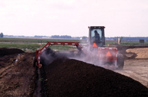 On the Purdue research farm, the compost is applied to alfalfa fields after the first cutting. "We use a standard manure spreader to spread it on the fields, so we're not inventing anything new there," Hawkins says. He suggests that the finished compost also could be sold to landscaping contractors or given away to neighbors in a suburban setting to build good community relations. The Purdue composting facility, which was built with a grant from the Indiana Department of Environmental Management, uses a 1.3-acre site near the Purdue dairy barns. The Purdue dairy herd is made up of 400 animals that produce about nine tons of manure solids a day. When the composting site is at capacity, there is room for 13 rows of composting material. Each row is approximately five feet high, 10 feet wide and 250 feet long. The rows are turned using a specialized windrow turner. The site development costs for the composting project were approximately $4,600, which included bulldozing a slope, berm, and retention pond (to capture rainfall runoff); adding rip-rap, an overflow pipe, and perimeter fence; and labor. The major startup cost for the composting project was a pull-type windrow turner, which was purchased in 1996 for $19,400. The windrow turner allows faster turning of the compost and a better end product. "The turning can be done with common farm equipment, such as a front-loader tractor and a manure spreader, but that method is more time-consuming," Hawkins says. "We can turn the entire site in about two hours." In addition to the windrow turner, a carbon dioxide tester, thermometer and pH meter were purchased for $1,020. Since 1995, the operating costs have averaged approximately $4,500 per year, which includes labor, site maintenance (additional grading, mowing, etc.), and equipment depreciation. "We're not trying to make the best compost possible," Hawkins says. "That's not our objective. We're trying to reduce costs and reduce chances of pollution. You could make it look like the stuff in the store, but we just do it to solve a problem and eliminate the smell."