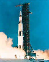 Liftoff. From the tip of the command module to the base of the mighty Saturn V rocket,