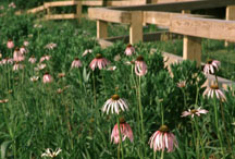 He says wildflowers, which include native prairie grasses and broadleaf flowers, offer many advantages, including environmental ones, over large expanses of trimmed turf. "For people who like a highly controlled landscape with, for example, Japanese yews clipped and sheared, this has little appeal," Dana says. "But a fundamental environmental ethic is embodied in planting native species. I view it as an underutilized plant group. From the environmental diversity aspect alone, native wildflowers are worth including in our landscaping options." Native plantings work well in large, full-sun areas, such as those found on industrial sites and golf courses, in highway medians, and in some farm areas. Native grasses are even acceptable on some Conservation Reserve Program lands, except lands that are in danger of erosion or those that are forested. Dana says that native wildflower plantings have a mixture of forbs, which are wild flowering herbs, and flowering prairie grasses. Among the forbs that Dana recommends are gray-headed coneflower, bee balm, prairie phlox, tall tickseed, Culver's root, obedient plant, butterfly weed, compassplant, prairie dock, pale purple coneflower and prairie blazing star. Recommended grasses include big bluestem, indiangrass, side-oats grama, little bluestem and switchgrass. Dana has compiled a list of sources for seeds and plants and posted it on the Purdue Consumer Horticulture Web. "I'm not a 'natives are always better' advocate," Dana says. "In fact, when we talk about urban landscapes, native plants can be poorer landscape performers than non-native species. But in the proper setting, native grasses and wildflowers do very well. A wildflower planting has several advantages over just mowing these areas. Doing that is just a large expense, and boring, too." According to Dana, wildflower areas offer these advantages:
