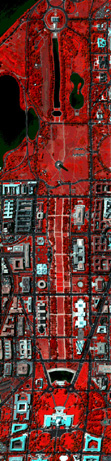 PHOTO CAPTION: This color infrared photograph of the National Mall in Washington, D.C., can be manipulated by a computer program to make a detailed image that distinguishes between rooftops, roads, vegetation and other surface materials. Color photo, electronic transmission, and Web and ftp download available. Photo ID: Landgrebe.spy ABSTRACT