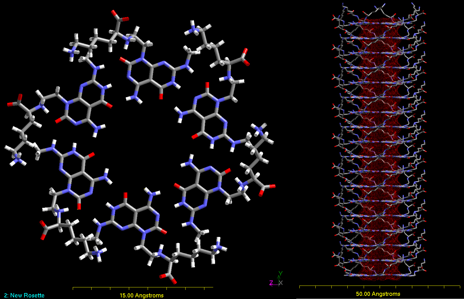 IMAGE CAPTION: A publication-quality photo is available at https://ftp.purdue.edu/pub/uns/+2004/webster-rosette.jpg Helical rosette nanotubes: a more effective orthopedic implant material and Thomas J. Webster1 1 Department of Biomedical Engineering, Purdue University 2 National Institute for Nanotechnology and Department of Chemistry, National Research Council and the University of Alberta Due to the nanometric properties of some physiological components of bone, nanomaterials have been proposed as the next generation of improved orthopedic implant materials. Yet current efforts in the design of orthopedic materials such as titanium (Ti) are not aimed at tailoring their nanoscale features, which is now believed to be one reason why Ti sometimes fails clinically as a bone implant material. Much effort is thus being dedicated to developing improved bioactive nanometric surfaces and nanomaterials for biospecificity. Helical rosette nanotubes (HRN) are a new class of self-assembling organic nanotubes possessing biologically-inspired nanoscale dimensions. Because of their chemical and structural similarity with naturally-occurring nanostructured constituent components in bone, such as collagen and hydroxyapatite, we anticipated that an HRN-coated surface may simulate an environment that bone cells are accustomed to interacting with. The objective of the present in vitro study is therefore to determine the efficacy of Hrn as a bone prosthetic material. Results of this study clearly show that both HRN-K1 and HRN-Arg coated Ti displayed enhanced cell adhesion when compared to uncoated Ti. Enhanced cell adhesion was observed even at concentrations as low as 0.005 mg ml-1. These results point towards new possibilities in bone tissue engineering as they serve as a starting point for further mechanistic studies as well as future manipulating of the outer chemistries of HRN to improve the results beyond those presented here. One such effort is the incorporation of peptide sequences on the outer surfaces of HRN and/or growth factors known to enhance bone functions.