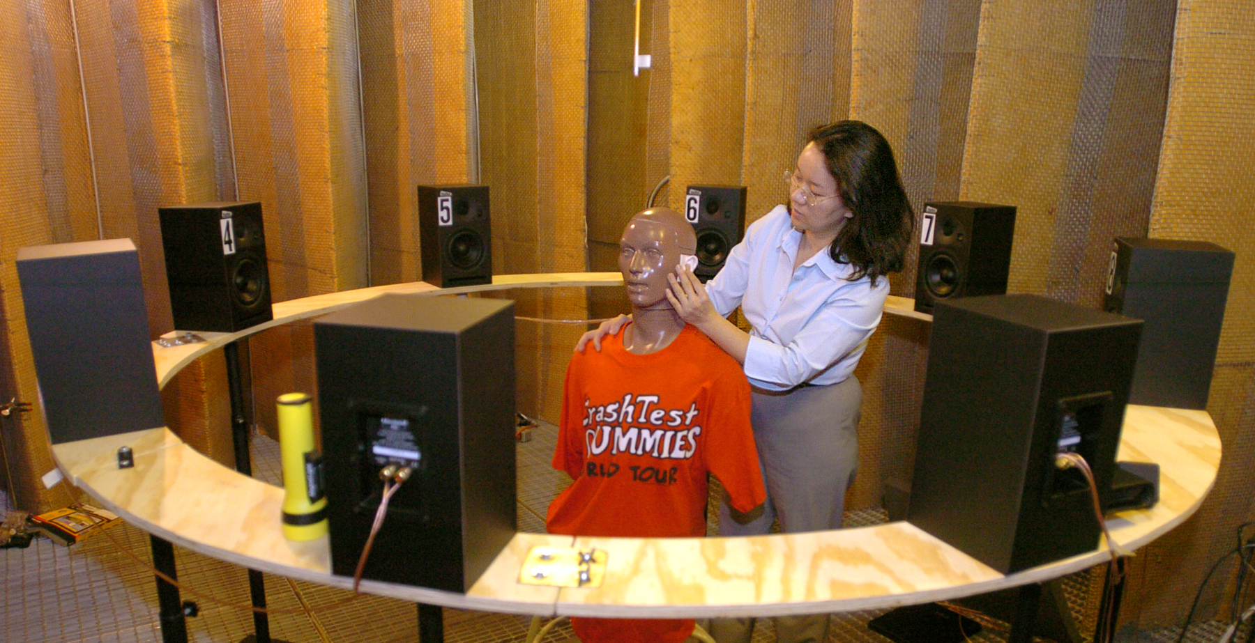 PHOTO CAPTION: A publication-quality photo is available at https://ftp.purdue.edu/pub/uns/+2004/chung-dummy.jpg Using hearing aid directional microphones Hearing aids and cochlear implants are two major hearing enhancement technologies but yet share little in research and development. The purpose of this study was to determine whether hearing aid directional microphones and noise-reduction technologies could enhance cochlear implant users' speech understanding and ease of listening. Digital hearing aids serving as preprocessors were programmed to omni-directional microphone, directional microphone, and directional microphone plus noise reduction conditions. Three groups of subjects were tested with the hearing aid processed speech stimuli. Results indicated that hearing aids with directional microphones and noise reduction algorithms significantly enhanced speech understanding and listening comfort.