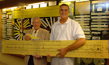 The permanent display, on the first floor of the universitys Potter Engineering Center, houses the pre-digital analytical marvels, some of which were made in the 19th century and range in length from a few inches to seven feet. "There was a point in time when the slide rule was king," said James Alleman, a professor of civil engineering who began collecting the slide rules from alumni 15 years ago. "During a period of about 400 years, anything anybody built that was of any magnitude would have required a slide rule." Then, in the early 1970s Hewlett Packard came out with the first commercial calculator, the HP-35, signaling an end to the slide rules dominance in scientific computing. Purdue alumnus and retired civil engineering professor Robert Miles fondly recalls the calculators debut. "We bought 10 HP-35s and had six installed in the civil engineering structures lab," said Miles, who helped design the display and paid for its construction. "Those six calculators were mysteriously missing within about two weeks, even though they were chained down." Although calculators revolutionized the world of computation for engineers, scientists and students, they also introduced a disturbing educational trend. "Many people who push the buttons on calculators dont really know what the numbers mean, while on a slide rule you had to analyze where the decimal point went, and you had to better understand the mathematics," said Miles, who taught civil engineering at Purdue for 40 years, retiring in 1990. He also holds a bachelors degree and masters degree in civil engineering from Purdue. "A slide rule gives you an amazing amount of computational ability, and people today dont even remember what these things are capable of doing," Miles said. Alleman said he began collecting the slide rules out of personal interest and for a display to coincide with civil engineerings centennial celebration in 1987. The new glass-enclosed wall exhibit includes slide rules from four astronauts who are Purdue alumni: Armstrong, the first man to walk on the moon; Ross, who has logged more space-walking hours than any other astronaut; Richard Covey and Roy Bridges. Eugene Cernan, the last man to walk on the moon and also a Purdue alumnus, has promised to send his slide rule, as well. "There are a lot of human stories here," Alleman said. "If these slide rules could talk because of all the alumni who donated these things I am sure they would each tell remarkable stories about projects they were used on." The display, which is roughly 6 feet high and 12 feet long, "is sort of a history of slide rules," he said. "Our gigantic 7-foot-long slide rules really catch your eye, and then as you get up close the display kind of pulls you in with the story that it tells," Alleman said. The exhibit is arranged in a series of panels about the history of slide rules, recounting how English scientists developed the devices. It all began in 1614, when Scottish mathematician John Napier discovered the logarithm, with which multiplication and division could then be completed using addition and subtraction. Six years later, English mathematician Edmund Gunter created a number line in which the positions of numbers were proportional to their logarithms, and in 1632 fellow countryman William Oughtred used Gunters approach to invent the first slide rule. The display includes cylindrical slide rules and slide rules made of metal, wood, bamboo, paper and plastic. The largest slide rules were used in classes to teach students how to use them, Miles said. "Taking a course to learn how to use a slide rule was mandatory at one time," he said. "And from then on you used it for the rest of your academic career." Writer: Emil Venere, (765) 494-4709, venere@purdue.edu Sources: James Alleman, (765) 494-7705, alleman@purdue.edu Robert Miles, (765) 463-5494, rdmiles@attglobal.net Purdue News Service: (765) 494-2096; purduenews@purdue.edu