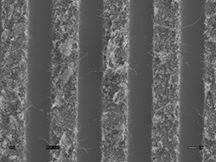 IMAGE CAPTION: This image, taken with a scanning electron microscope, shows arrays of nanofibers that have been aligned by pouring them into grids of tiny channels. Because the channels are so narrow, the tubes can only fit lengthwise, causing them to become aligned, similar to the way in which collagen fibers and natural ceramic crystals are aligned in bones. Because the nanofibers are aligned like natural collagen, they might be used to create better artificial joints that last longer and attach better to human bones. (Purdue University, Department of Biomedical Engineering and Department of Physics) A publication-quality photograph is available at https://ftp.purdue.edu/pub/uns/+2004/webster-align.jpg