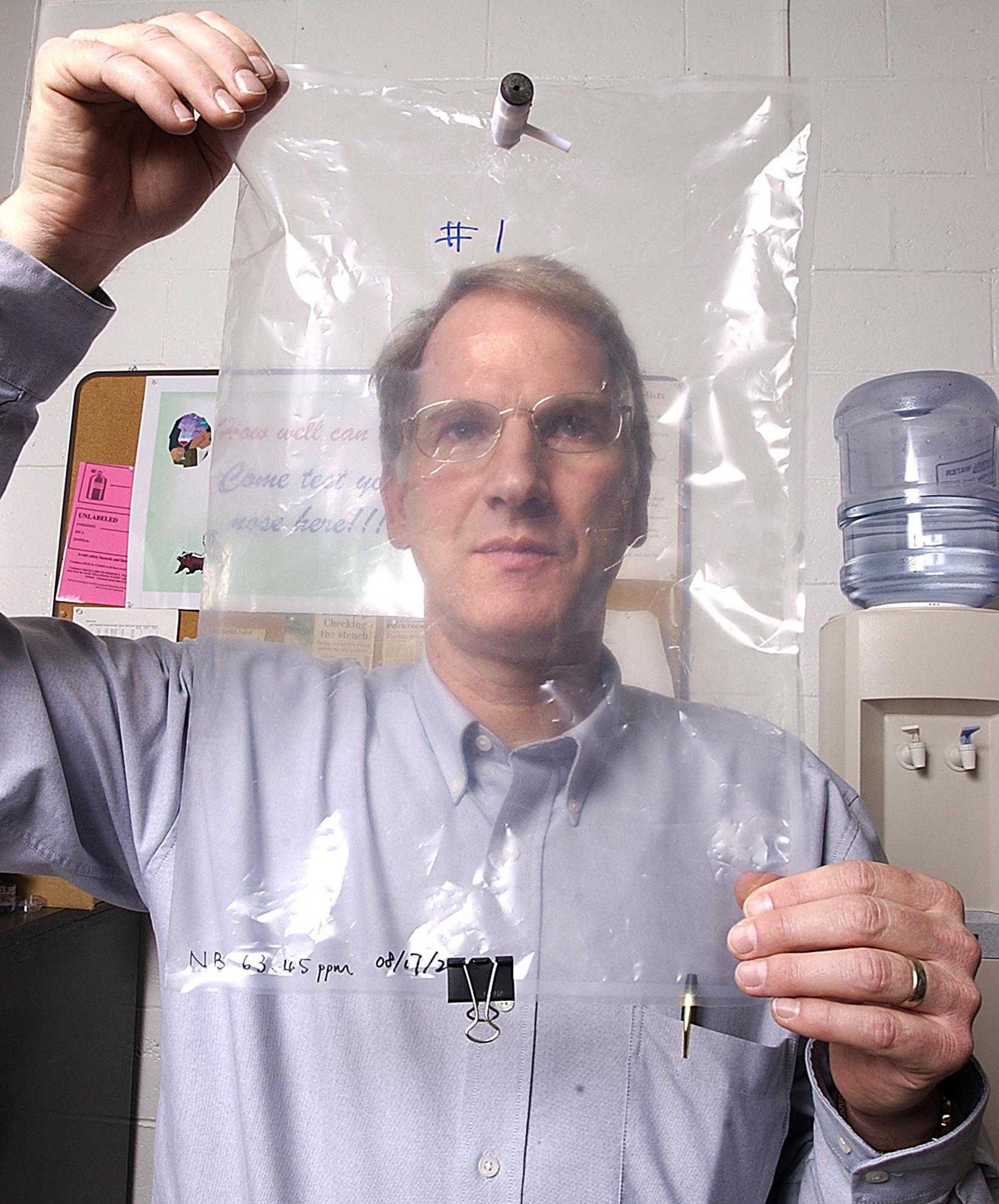 PHOTO CAPTION: A publication-quality photo is available at https://ftp.purdue.edu/pub/uns/+2005/heber-stinkbag.jpg PHOTO CAPTION: A publication-quality photo is available at https://ftp.purdue.edu/pub/uns/+2005/richert-airsamp.jpg
