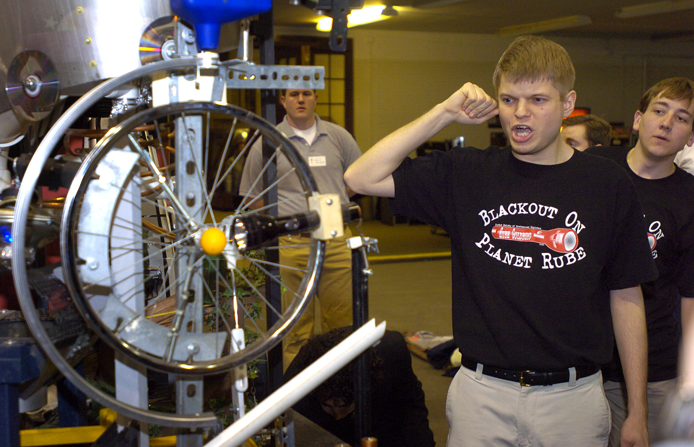 March 28, 2005 Purdue team goes for spotlight in national Rube Goldberg contestWEST LAFAYETTE, Ind. Purdue University will try to light up a three-peat in complexity and inefficiency at the 18th annual national Rube Goldberg Machine Contest.