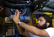 The researchers have demonstrated that their method can be used to show precisely how a part's performance is changed by damage and also how its changing performance affects other parts in the suspension. Findings are detailed in a paper being presented Wednesday (Nov. 9) during the International Mechanical Engineering Congress and Exposition in Orlando, Fla. The conference is sponsored by the American Society of Mechanical Engineers. The approach represents a potential change in how automotive suspension systems will be designed in the future, said Douglas E. Adams, an associate professor of mechanical engineering who is leading the research. "The way it's done now is that each of the parts making up the suspension are manufactured to be as rugged as possible," Adams said. "Usually, different suppliers provide the different components, and what they do as good suppliers is optimize the strength and durability of their component. "The problem with this approach is that some of the parts are over-engineered and heavier than they need to be because they are designed to withstand greater forces than they will encounter once they are integrated into the system. This results in a heavy suspension system that doesn't handle very well, and higher fuel and steel consumption than you would like. "A better, more integrated approach that automakers are now pursuing is to test the entire suspension by analyzing parts, not as isolated units but as interconnected components. That way, we will learn more precisely how individual parts interact with each other, and we will be able to design parts that are just as light and rugged as they need to be but not too heavy or rugged." The integrated approach is particularly important for the design of suspension systems because one damaged part can cause heavier strain on surrounding parts. If engineers know which parts are most prone to damage, those parts can be built heavier and other parts can be made lighter, reducing the overall weight and improving the performance of the suspension. A suspension system consists of parts such as bolts, rubber bushings, coil springs, steering mechanisms and tie rods. The method developed at Purdue senses naturally occurring vibration patterns to detect damage to components. Sensors called "tri-axial accelerometers" are attached to suspension components and are used to collect data as vibration passes through the components. The data are fed to a computer, where complex software programs interpret the information to analyze each part's performance. Such "fault-identification" methods may not only provide information for designing better suspensions but also might be used for future "structural health monitoring" systems in cars that automatically detect damaged parts and estimate how long they will last. When perfected, such a "systems approach" could provide a competitive edge to companies that make suspension parts. The work is funded by ArvinMeritor Inc., which makes suspension components at its plant in Columbus, Ind. The research also is supported by the Center for Advanced Manufacturing, located in Purdue's Discovery Park, the university's hub for interdisciplinary research. "We want to develop instrumentation, sensing methods and technologies and also ways to process data that industry can use to conduct durability tests on so-called integrated suspensions," Adams said. "The company that designs an integrated suspension system that is lighter and lasts longer than the component-wise suspension will have a competitive advantage over other companies." The research paper being presented this week, written by mechanical engineering doctoral student Muhammad Haroon and Adams, focuses on bolts connecting the various components in the suspension system of a luxury sedan. In research conducted at the university's Ray W. Herrick Laboratories, the engineers showed that their system was able to detect damaged bolts, precisely determine how a bolt's performance was affected by the damage and how its changing performance affected other parts in the suspension system. "What we've shown in this particular paper is that we can detect very small changes in a part's performance when it is damaged, and we've also been able to quantify the changes, which is really significant," Adams said. "We quantify the changes by turning data into information using a software algorithm that utilizes an embedded sensitivity model, which we developed. "The reason it's important to quantify the change is that, if we know one part is experiencing a failure mechanism of a certain type and another component is experiencing increasing strain as a result of the damaged part, we can figure out which parts need to be heaviest and which can be lighter." The researchers hope to complete work to develop the method in less than two years, at which time it could be ready for commercial use. Writer: Emil Venere, (765) 494-4709, venere@purdue.edu Source: Douglas Adams, (765) 496-6033, deadams@purdue.edu Purdue News Service: (765) 494-2096; purduenews@purdue.edu