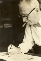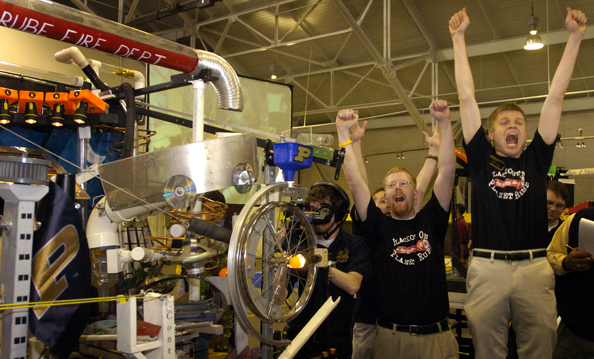 PHOTO CAPTION Rube Goldberg (1883-1970) was a Pulitzer Prize-winning political cartoonist and trained engineer. He became most known for his whimsical drawings of "Rube Goldberg machines" devices that are exceedingly complex and perform very simple tasks. College students from around the nation pay homage to Goldberg annually through the Rube Goldberg Machine Contest. A regional event and the national competition are held annually at Purdue University. (Photo courtesy Rube Goldberg Inc.) A publication-quality photograph is available at https://www.purdue.edu/uns/uns/images/+2006/goldberg-rube.jpg