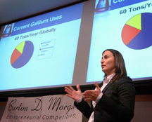 M4 Sciences Corp. won the top $30,000 prize in the Gold (graduate) Division of the business plan presentation contest, which took place at Discovery Park's Burton D. Morgan Center for Entrepreneurship. James Mann, chief executive officer of M4 Sciences, made the winning presentation, explaining the company's techniques, which are expected to bridge the gap between nanomanufacturing and macromanufacturing with products that require ultra-precise, highly accurate miniaturized components. Team member Brian Gootee is chief operating officer and director of information technology of the company based at Purdue Research Park. M4 Sciences also won $5,000 of in-kind services from Ice Miller, a legal and business services firm based in Indianapolis. The company was awarded an additional $5,000 from Indiana Economic Development Corp. onCurrent.com won the $15,000 prize in the Black (undergraduate) Division for a startup company that created an online calendar that helps promote arts and music and allows users to supply the information. Immanuel Mullen and Christopher Thomas made the winning presentation. They plan to strengthen networking communities across the United States. Other winners in the Gold Division were: * Second place, $8,000 and $3,000 in Ice Miller services: MatrixBio LLC. * Third place, $6,000 and $2,000 in Ice Miller services: AlGalCo. * Fourth place, $2,000: Vis Viva Energy. * Fifth place, $1,500: TranCell Technologies. Other winners in the Black Division were: * Second place, $6,000: RAF Solutions. * Third place, $4,000: NudeLaptops.com. * Fourth Place, $1,500: EcoTrikes. Inc. * Fifth Place, $1,000: Zlin. Judges were John C. Aplin, managing director of CID Capital; Don N. Aquilano, director of Blue Chip Venture Company and managing director of Gazelle Tech Ventures; Carrie Bates, managing partner of Triathlon Medical Ventures; Chaz Giles, strategist and finance manager of FutureWorks Procter & Gamble; Dr. Ken Green, founding partner of Spring Mill Ventures; G. Logan Jordan, associate dean of administration in Purdue's Krannert School of Management; Michael Menefee, professor of organizational leadership and supervision in Purdue's College of Technology; Jennifer Rhodes, partner at Ice Miller; Steve Shade, managing director of Purdue's Center for Advanced Manufacturing in Discovery Park; and Henry J. Suerth, executive education program director in the Krannert School. "In the Gold Division, we saw five viable technology-based businesses," Jordan said. "It wouldn't surprise me to see all of them become growing concerns, and I know Burton Morgan would have been very happy with that result." Richard A. Cosier, Krannert School dean and Leeds Professor of Management, moderated the competition. "The Burton D. Morgan competition has evolved over its 20 years to become a leading student event of its kind," Cosier said. "This year's contestants again reflect the high-technology nature of Purdue University and the Krannert School, and they give us a glimpse into future innovations that will have an impact in our state and beyond. We'd also like to sincerely thank the Burton Morgan Foundation for funding much of the competition." The late Burton D. Morgan was a Purdue alumnus who started 50 companies, six of which have become major corporations, including Morgan Adhesives, one of the world's largest makers of pressure-sensitive adhesives. He also was president of Basic Search Co., an idea-development firm, and wrote several books on entrepreneurism. Morgan established the entrepreneurship competition in 1987 with an endowment gift to Purdue. The Burton D. Morgan Foundation funded the $7 million, 31,000-square-foot Center for Entrepreneurship. Writer: Maggie Morris, (765) 494-2432, maggiemorris@purdue.edu Sources:Logan Jordan, (765) 494-4360, jordan@purdue.edu Richard A. Cosier, (765) 494-4366, rcosier@mgmt.purdue.edu