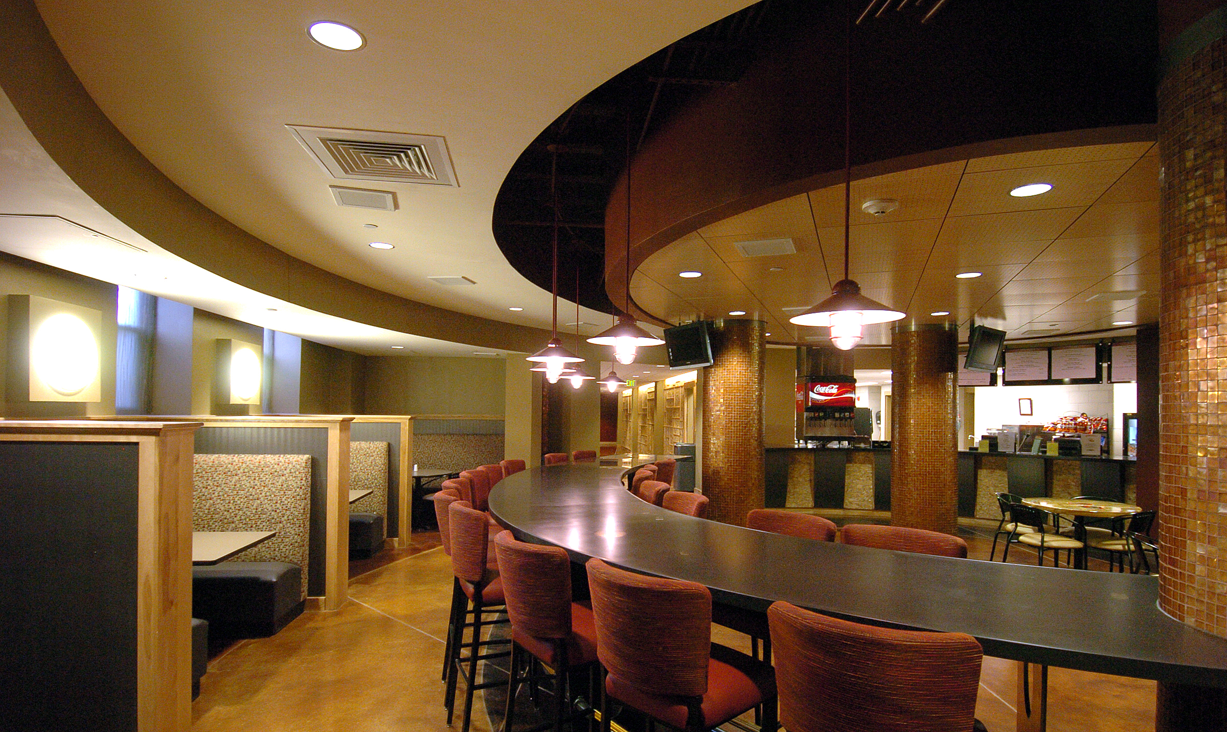 In addition to the 6 p.m. to 1 a.m. service, the quick-service restaurant will now serve diners from 11 a.m. until 1 p.m. Monday through Friday. The restaurant closed for remodeling in May 2005 and reopened for nighttime business in August 2006. Lunch specials with a side and a drink will be offered daily for less than $5. Sandwiches, burgers, pizzas, soups, salads, soft drinks and milkshakes will remain menu staples, and lunch specials will rotate every two weeks. The regular, chef-designed menu is updated during summer, fall, winter and spring breaks. Kari Glebe, coordinator of retail sales and marketing, said the evening and night hours have proven popular with students, but the new daytime hours are designed particularly to serve the lunch needs of Purdue employees. "We consistently hear that they have missed the ability to get a quick, affordable, freshly prepared meal in a convenient, comfortable, cozy location," Glebe said. "We're pleased to fill that dining niche in a space that is now much larger and more modern than our customers enjoyed before." The grill has been expanded into space formerly occupied by the post office in the southeast corner of Cary Quadrangle near the intersection of Stadium Avenue and University Drive. The 150-seat restaurant includes table, booth and counter seating. Concrete floors have been stained in warm, swirling colors, and columns are tiled in glass. Walls paneled with oriented strand board draw on the aesthetics of Prairie and Craftsman architecture. Black metal furniture, recessed and pendant lighting, original artwork and high-definition televisions complete the modern look. "The University Residences dining experience is not reserved for our residents," said Barbara Frazee, executive director of University Residences. "We've created a facility and a team at the Cary Knight Spot Grill that will do a good job of serving the needs of a broad cross-section of the university community." The restaurant makes two significant nods to Cary Quadrangle history. The knight statue that has been the symbol of the halls for decades will be enclosed in a glass case in the dining room. The wood-topped tables from the grill's previous incarnation have been preserved and refinished. Each tabletop includes etchings and art from graduating seniors, an honor reserved for men who spent their entire undergraduate years living at Cary Quadrangle. The restaurant is within easy walking distance from north and central campus areas. City Bus Silver Loop buses stop on Stadium Avenue on the south side of Cary Quadrangle. The Tower Acres route stops near the northeast corner of Cary Quadrangle at the intersection of University and Tower drives. The Ross Ade route stops at both locations. Writer: Jim Schenke, (765) 494-6262, jschenke@purdue.edu Sources:Barbara Frazee, (765) 494-1000, bjfrazee@purdue.edu Kari Glebe, (765) 494-2264, klglebe@purdue.edu