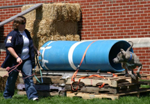 The Saturday-only event will take place from 10 a.m. to 5 p.m. in and around the Lynn Hall of Veterinary Medicine. Third-year veterinary students traditionally organize the event, which is free and open to the public. This year's co-chairs are Erika Miller of Monument, Colo., and Beth Barno of Schererville, Ind. "Because this year's theme is A Day in the Life of a Vet, we are passing out report cards to kids who go around to the different classrooms and 'pass' that year in veterinary school," Miller said. "The visitors also can go to some of the lectures and displays to get credit on their report card. It should be a lot of fun for everyone." The parade kicks off at 9:30 a.m. on South University Street, behind the Food Science Building, and continues to Harrison Street before ending in the parking lot next to the Small Animal Hospital. The Vet Olympics will take place from 11:30 a.m. to 1 p.m. on the grassy area west of the veterinary school. It will feature several "virtual" events that don't involve animals but do feature veterinary-related activities, including a cow-milking competition, an obstacle course to get the pet to the vet and a game that gives children a chance to look through "intestines" (made from stuffed pantyhose) to find what the animal swallowed. "A vet student will be available at each event to help the kids complete the task," said Katie Lehman, a third-year student from Evansville, Ind., who helped organize the competition. "I hope the kids will enjoy it." While many of the open house activities are outside, the School of Veterinary Medicine also will open its doors for tours of the Veterinary Teaching Hospital, workshops on admissions, exhibits covering a variety of animal-health topics and a special presentation of veterinary science posters made by 4-H students who won contests in each Indiana county. Featured attractions and demonstrations include: * Performing an ultrasound on a pregnant pig. * A falconer's lecture and demonstration. * Closed-circuit TV viewing of a live spay or neuter surgery. * A farrier demonstration with a blacksmith showing how to shoe a horse. * Llamas and other exotic animals. * Dogs herding sheep. * Tippecanoe County Sheriff's Department K-9 unit performing search and rescue exercises. * Animal rescue groups. The veterinary school open house is one of the major attractions associated with Purdue University's Spring Fest, which takes place April 14-15.Writer: Maggie Morris, (765) 494-24327, maggiemorris@purdue.edu Source: Kevin Doerr, director of alumni relations and public affairs for veterinary school, (765) 494-8216, doerrkr@purdue.edu