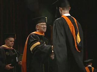 Jischke said that dream is about much more than fame or riches. "The American Dream is opportunity," he told the graduates during ceremonies at the Elliott Hall of Music. "When coupled with desire and hard work, opportunity can fulfill our greatest dreams." Jischke on Friday (May 11) spoke to graduates from the School of Management and College of Technology, their families and friends during the first of four spring commencement ceremonies. Additional ceremonies also are scheduled for 9:30 a.m. and 2:30 p.m. Saturday (May 12) and 9:30 a.m. Sunday (May 13). This weekend marks the university's 201st commencement. Jischke is retiring this summer after seven years as Purdue's president and has led four universities over the last 22 years. He used his final commencement to reflect on his own life and career and to look ahead to what graduates can offer the world as they begin their own careers. "I will always have a special bond with the class of 2007," he said. "In a sense, this weekend my wife, Patty, and I are graduating with you." The grandson of an immigrant from an area that is now part of Poland, Jischke told of how his father wanted to be a physician. Instead, the Great Depression made attending college impossible, and he became a grocer in Chicago. Martin Jischke became the first in his family to graduate from college. Upon receiving his doctoral degree, he went home for a visit and gave his thesis to his parents. He had dedicated it to them. "When my father saw this, he started weeping," Jischke said. "I will never forget it. I wonder what my father would think if he could see me standing here today as president of one of the world's best universities. I have far exceeded his greatest dreams - and mine." The story, he said, is not about him. It's about the power of education. "I believe in the power of education to change lives," he said. "I believe in the power of an educated people to change the world. I believe this intellectually. And I believe it personally and emotionally, as well. I have seen the power of education in my own life." That power, he said, helps fulfill a promise that was first identified by a little-known American historian, James Truslow Adams. In his widely translated book, "Epic of America," Adams coined the term "The American Dream." "Wherever you come from in the world - and we have many international graduates here today - you have heard of the American Dream," Jischke said. "It is part of American culture and heritage. It is the essence of what we, as Americans, believe about ourselves and our nation." The term was introduced in 1931, in the early years of the Depression. U.S. unemployment was at 16 percent, and 8 million people were out of work. But somehow, Jischke said, people believed Adams when he said "the American Dream." Adams defined the phrase as the opportunity for everyone to attain a richer and fuller life, regardless of birth or position. "Standing here before you, the grandson of a Polish immigrant with little education, the son of a grocer, I have experienced the incredible opportunity of serving as president of Purdue," Jischke said. "I am surely living the American Dream. "I believe the American Dream is the dream of this nation. "I believe the American Dream is the opportunity to live in a nation in which diversity is celebrated as the source of strength and beauty. "I believe the American Dream is the opportunity not only to acquire, but also to give and to serve people in need. "I believe the American Dream is the opportunity to pursue knowledge freely. "I believe the American Dream is the opportunity to share these great possibilities with people throughout the world, no matter where they live, no matter what their circumstance." He implored graduates to believe that the dream is still alive. He recounted words from Brooks Atkinson, a 20th century drama critic. Atkinson said the nation's pioneers weren't afraid to fail. He said scientists weren't afraid of the truth, thinkers not afraid of progress and dreamers not afraid of action. "What is the American Dream?" Jischke asked the graduates. "Ultimately, you are the American Dream. ... You are the culmination of all the dreams of all the people who have dreamed before you. You are the best-educated generation in the history of the world. Your opportunities are limited by the depth of your resolve and the height of your ambition. "This is among my final commencements. This is my final message to you. You are our American Dream for a better tomorrow."Writer: Jim Bush, (765) 494-2077, jsbush@purdue.edu Sources: Martin C. Jischke, (765) 494-9708 Christine Dehahn, assistant registrar, (765) 494-6163, dehahn@purdue.edu