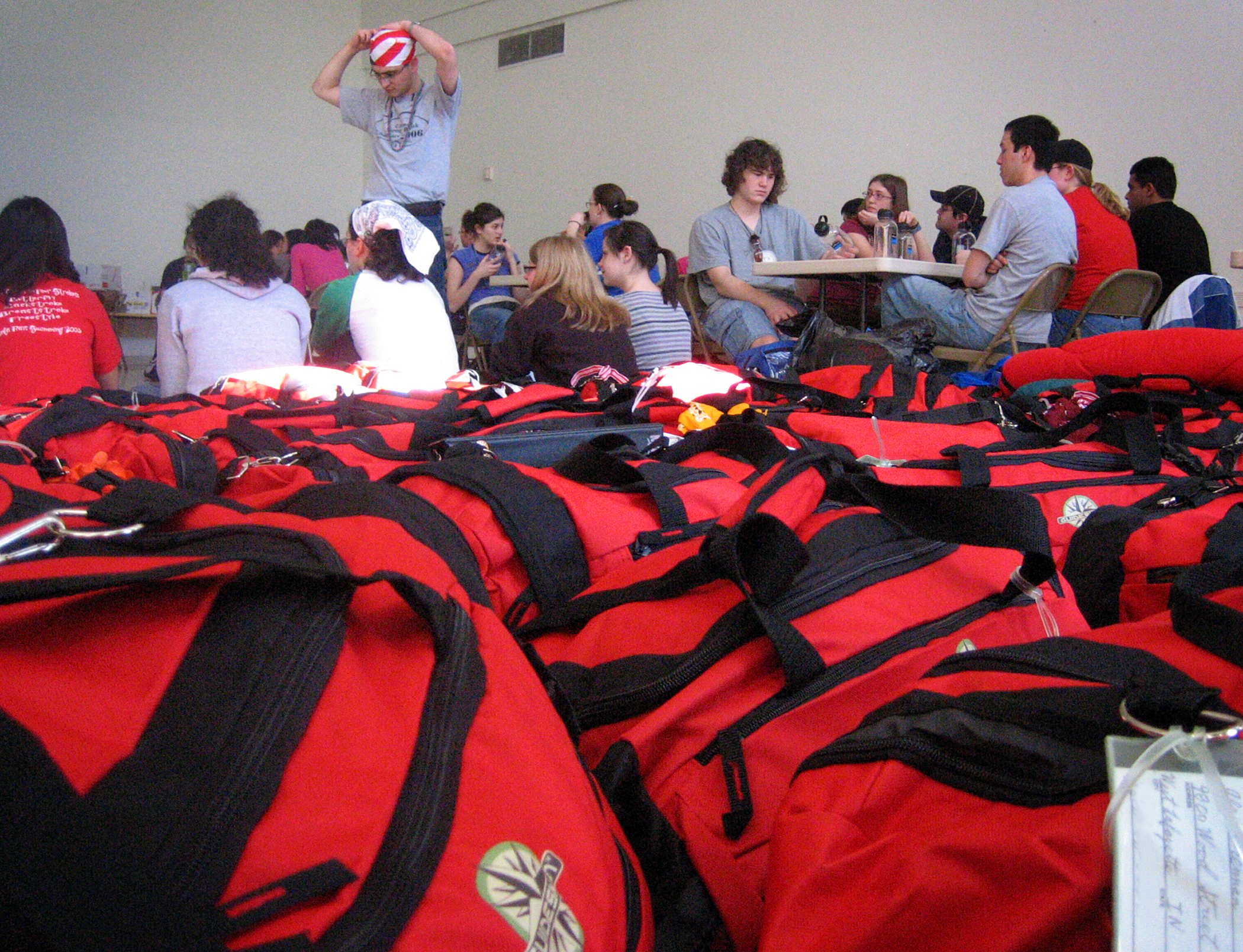 Purdue News Service: (765) 494-2096; purduenews@purdue.edu PHOTO CAPTION: Fifty-one Purdue students arrive at a church in Metairie, La., on Saturday (March 10) to participate in Ultimate Spring Break Challenge 2007. The University Residences event puts students to work rebuilding houses in New Orleans' Ninth Ward, an area flooded by hurricane Katrina. Team leader Rail Shafigulin (standing), a resident assistant at Hawkins Hall who participated in a similar event last year, briefs students in his group about what to expect during the week. (Purdue News Service photo/Jim Schenke)