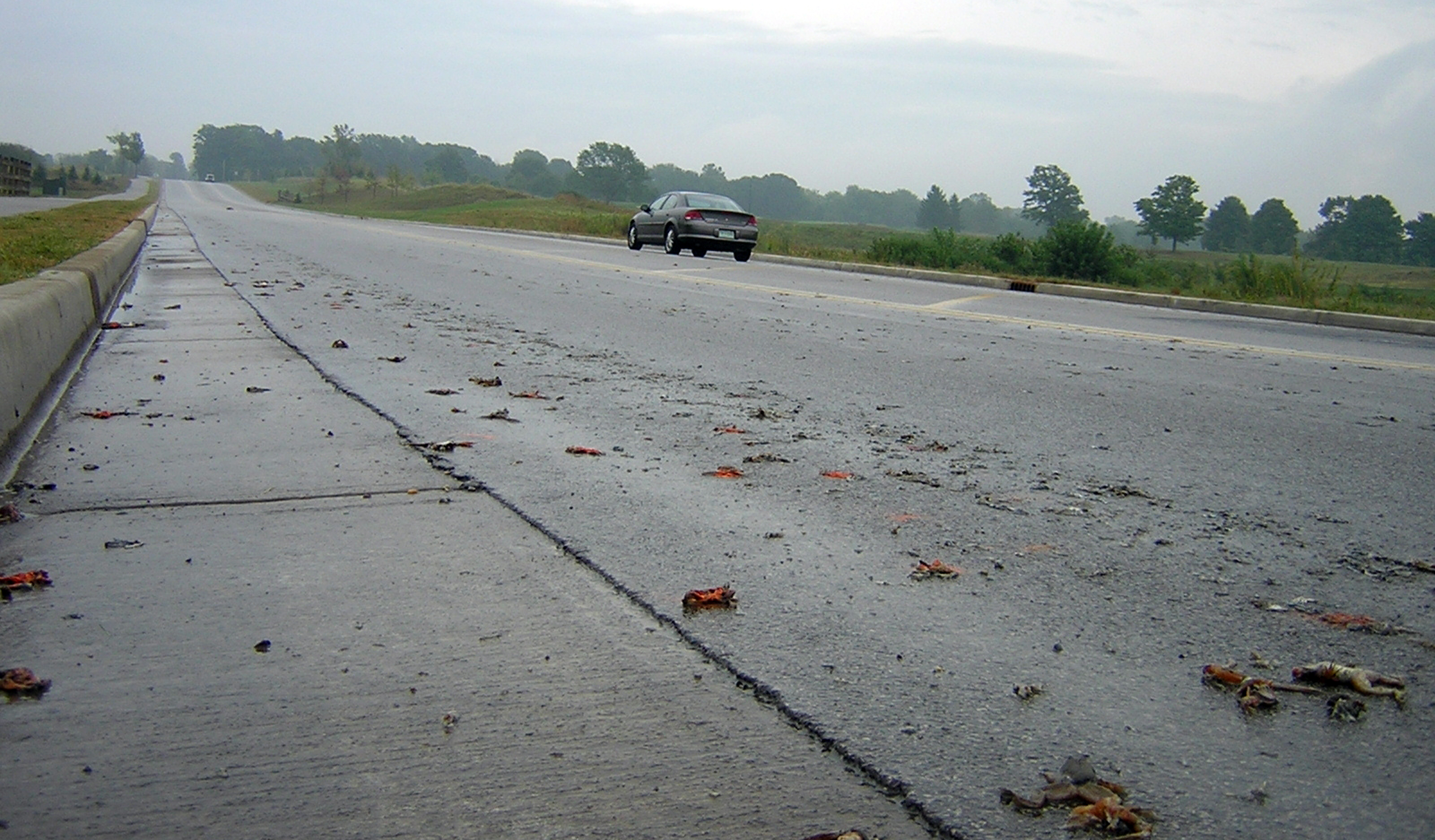 Researchers found more than 65 animal species killed along a short stretch of roads in a Midwestern county. Nearly 95 percent of the total dead were frogs and other amphibians, suggesting that road-related death, or road-kill, possibly contributes to their worldwide decline, a trend that has concerned and puzzled scientists for decades. The Purdue University study found that habitat along roadsides heavily influences road-kill. More than 75 percent of the carcasses originated alongside a one-mile stretch of road that traverses a wildlife-friendly wetland known as Celery Bog in West Lafayette, Ind. "On hot summer nights when it rains, there are literally thousands of frogs out there," said Andrew DeWoody, a Purdue researcher who led the study in Tippecanoe County, home to the university. During the 17-month study, researchers found 10,500 dead animals along 11 miles of roads. Of those, 7,600 were frogs of unidentifiable species and another 1,700 were bullfrogs, said DeWoody, an associate professor of forestry and natural resources. "In addition to indirect costs of habitat fragmentation, roads have direct costs in terms of animals' lives," he said. Several steps can be taken to help reduce road-kill, said Dave Glista, study co-author and a Purdue master's graduate who began the study as part of his since-completed thesis measuring roads' environmental impact. For one, development planning should take into account an area's wildlife value. Second, structures to mitigate, limit and prevent road-kill should be explored whenever possible, he said. Options include underpasses, viaducts and overpasses to allow wildlife safe passage, and special fences to keep animals off roads. "We need to avoid, minimize and mitigate," said Glista, now a scientist with the Indiana Department of Transportation. "As a biologist, I do think we should avoid building roads in wetlands and other wildlife-rich areas. Mitigation structures are worth the cost, as is any measure we can take to minimize our impact on the overall environment." Scientists estimate that one-third of amphibian species are threatened, and hundreds of species have gone extinct in the past two decades alone. Road-kill adds to numerous factors already implicated in amphibian declines, DeWoody said. These include habitat loss and degradation, disease, pollution, competition from introduced exotic species, and threats posed by climate change. Frogs, toads and salamanders are all amphibians, a class of four-legged animals known for their moist, scale-free skin. Most species begin life as gilled, water-dwelling creatures before undergoing a dramatic metamorphosis to become four-legged, air-breathing adults, walking or hopping about on land. They serve vital roles in many ecosystems, as consumers of various animals like insects and as a food source for carnivores. To maintain healthy ecosystems, it is vital to limit amphibian losses, DeWoody said. The study, published online in the latest issue of the journal Herpetological Conservation and Biology, significantly underestimated the number of animals killed because many specimens were scavenged, degraded beyond recognition or moved, DeWoody said. About five times more animals died than could be recorded, he estimated. The dead included 142 road-killed eastern tiger salamanders, a finding DeWoody said was troubling. "The absolute number might not look that large, but most of these individuals were mature, up to 10 years old," DeWoody said. "Many of them were gravid, or females bearing eggs on an annual trip to breeding grounds where they often lay 500 to 1,000 eggs. This could make a potentially big difference for the population." Researchers also found 74 dead northern leopard frogs, a species of special conservation concern in Indiana. To survive, most amphibians require habitats with running or standing fresh water, in which they lay eggs and begin life. This makes them vulnerable to water pollution and land-use changes like drainage or waterway disruption. Habitats like wetlands and rainforests are in decline worldwide, DeWoody said. In addition to the toll on frogs and other amphibians, roadways put a wide variety of other animals at risk, he said. Road-killed animals identified in the study included: * 79 opossums, the most common mammal; * 36 chimney swifts, most common bird; * 35 common garter snakes, most common reptile; * 43 raccoons; and * 4 white-tailed deer. Glista said he was surprised to find relatively few deer, but he speculated that more may have been hit and were either able to run away or were removed from the roadway. "We think of deer as being one of the animals more commonly killed on the road, but they actually make up a tiny percentage of the total," he said. "I think that helps put the impact in perspective." Most road-kill was found along Lindberg Road, which passes through Celery Bog Nature Area in West Lafayette, Ind. Along a one-kilometer (0.6-mile) section, an average of eight amphibians were killed each day, DeWoody said. Funded by the Joint Transportation Research Program, a partnership of the Indiana Department of Transportation and Purdue, the study focused on road-killed vertebrates, or animals with backbones. Glista said it took some "backbone" to slowly drive a specially marked vehicle and stop for data samples along four sections of roads in Tippecanoe County twice weekly. During the 496 trips, he said he had close calls with motorists, but always remained careful. "I didn't want to become one of my own data points," he said. Writer: Douglas M. Main, (765) 496-2050, dmain@purdue.edu Sources: Andrew DeWoody, 765-426-8603, dewoody@purdue.edu David Glista, (317)234-5241, dglista@indot.IN.gov