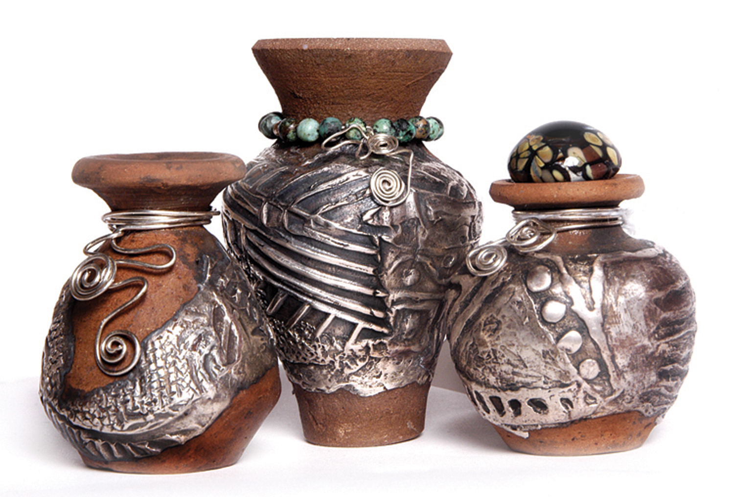Photos (all courtesy of PMC Guild International): Photo Cutline: Julie Keating, "Small Vessels," fine silver, ceramic, turquoise, glass A publication-quality photo is available: https://www.purdue.edu/uns/images/+2008/Galleries-Keating.jpg Photo Cutline: Hattie Sanderson, "Large Pearl Ring," fine silver, fine gold, freshwater pearl A publication-quality photo is available: https://www.purdue.edu/uns/images/+2008/Galleries-Sanderson.jpg Purdue Cutline: Holly Gage, "Small Pods," necklace, fine silver, cubic zirconia, freshwater pearls A publication-quality photo is available: https://www.purdue.edu/uns/images/+2008/Galleries-Gage.jpg To the News Service home page