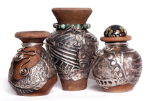 In the early 1990s, M. Morikawa of Mitsubsihi Materials Corp. in Japan developed precious metal clay as a way to join jewelry making and ceramics. Made of tiny particles of silver and gold suspended in an organic and water binder, the material can be worked like clay. After work is formed, it is fired in a kiln, the binder burns away, the metal particles fuse together, and the result is an object of pure silver, 22K or 24K gold. "This non-toxic material is used to make items such as jewelry, small sculptures and home décor pieces," said Jeanette Landenwitch, executive director of the PMC Guild. "PMC is proving to be an incredibly versatile material used all over the world, and the artists featured in the book and exhibition illustrate that global appeal."