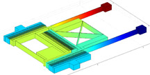 The device, called a monolithic comb drive, might be used as a "nanoscale manipulator" that precisely moves or senses movement and forces. The devices also can be used in watery environments for probing biological molecules, said Jason Vaughn Clark, an assistant professor of electrical and computer engineering and mechanical engineering, who created the design. The monolithic comb drives could make it possible to improve a class of probe-based sensors that detect viruses and biological molecules. The sensors detect objects using two different components: A probe is moved while at the same time the platform holding the specimen is positioned. The new technology would replace both components with a single one - the monolithic comb drive. The innovation could allow sensors to work faster and at higher resolution and would be small enough to fit on a microchip. The higher resolution might be used to design future computer hard drives capable of high-density data storage and retrieval. Another possible use might be to fabricate or assemble miniature micro and nanoscale machines. Research findings were detailed in a technical paper presented in July during the University Government Industry Micro/Nano Symposium in Louisville. The work is based at the Birck Nanotechnology Center at Purdue's Discovery Park. Conventional comb drives have a pair of comblike sections with "interdigitated fingers," meaning they mesh together. These meshing fingers are drawn toward each other when a voltage is applied. The applied voltage causes the fingers on one comb to become positively charged and the fingers on the other comb to become negatively charged, inducing an attraction between the oppositely charged fingers. If the voltage is removed, the spring-loaded comb sections return to their original position. By comparison, the new monolithic device has a single structure with two perpendicular comb drives. Clark calls the device monolithic because it contains comb drive components that are not mechanically and electrically separate. Conventional comb drives are structurally "decoupled" to keep opposite charges separated. "Comb drives represent an advantage over other technologies," Clark said. "In contrast to piezoelectric actuators that typically deflect, or move, a fraction of a micrometer, comb drives can deflect tens to hundreds of micrometers. And unlike conventional comb drives, which only move in one direction, our new device can move in two directions - left to right, forward and backward - an advance that could really open up the door for many applications." Clark also has invented a way to determine the precise deflection and force of such microdevices while reducing heat-induced vibrations that could interfere with measurements. Current probe-based biological sensors have a resolution of about 20 nanometers. "Twenty nanometers is about the size of 200 atoms, so if you are scanning for a particular molecule, it may be hard to find," Clark said. "With our design, the higher atomic-scale resolution should make it easier to find." Properly using such devices requires engineers to know precisely how much force is being applied to comb drive sensors and how far they are moving. The new design is based on a technology created by Clark called electro micro metrology, which enables engineers to determine the precise displacement and force that's being applied to, or by, a comb drive. The Purdue researcher is able to measure this force by comparing changes in electrical properties such as capacitance or voltage. Clark used computational methods called nodal analysis and finite element analysis to design, model and simulate the monolithic comb drives. The research paper describes how the monolithic comb drive works when voltage is applied. The results show independent left-right and forward-backward movement as functions of applied voltage in color-coded graphics. The findings are an extension of research to create an ultra-precise measuring system for devices having features on the size scale of nanometers, or billionths of a meter. Clark has led research to create devices that "self-calibrate," meaning they are able to precisely measure themselves. Such measuring methods and standards are needed to better understand and exploit nanometer-scale devices. The size of the entire device is less than one millimeter, or a thousandth of a meter. The smallest feature size is about three micrometers, roughly one-thirtieth as wide as a human hair. "You can make them smaller, though," Clark said. "This is a proof of concept. The technology I'm developing should allow researchers to practically and efficiently extract dozens of geometric and material properties of their microdevices just by electronically probing changes in capacitance or voltage." In addition to finite element analysis, Clark used a simulation tool that he developed called Sugar. "Sugar is fast and allows me to easily try out many design ideas," he said. "After I narrow down to a particular design, I then use finite element analysis for fine-tuning. Finite element analysis is slow, but it is able to model subtle physical phenomena that Sugar doesn't do as well." Clark's research team is installing Sugar on the nanoHub this summer, making the tool available to other researchers. The nanoHub is operated by the Network for Computational Nanotechnology, funded by the National Science Foundation and housed at Purdue's Birck Nanotechnology Center. The researchers also are in the process of fabricating the devices at the Birck Nanotechnology Center. Writer: Emil Venere, (765) 494-4709, venere@purdue.edu Sources: Jason Vaughn Clark, (765) 494-3437, jvclark@purdue.edu