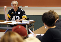 Purdue News Service: (765) 494-2096; purduenews@purdue.edu PHOTO CAPTION: Professor Robert Lamb, who was named the 2008 Indiana Professor of the Year on Thursday (Nov. 20), teaches an honors course about the American short story. The award, which is the only national ranking specifically designed to recognize excellence in undergraduate teaching and mentoring, is given by the Carnegie Foundation for the Advancement of Teaching and the Council for Advancement and Support of Education. (Purdue News Service photo/Andrew Hancock) To the News Service home page
