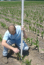 "The only way to pursue and achieve higher grain yields on a per-acre basis at high plant densities is to make sure that every single plant has the opportunity to compete with its neighbor in the row," said agronomy professor Tony Vyn. "The only way to achieve this competition ability is to have the genetic resources, in terms of a hybrid's ability to compete and gain access to nutrients and water." The results of this three-year study, which looked at approximately 4,000 individual plants each of the three years, are published in the early online version of Agronomy Journal. A downloadable version of the article is available at https://www.agronomy.org/publications/agronomy-journal/view/101-6/aj09-0082-pub.pdf Each year from the time that seedlings first emerged from the soil, the plants were barcoded. Vyn's team grew to understand how individual plants compete with neighbors at three different plant densities and three different nitrogen rates. "This study is perhaps the most comprehensive study that's ever been done to look at the multiple stress effects on individual corn plant performance during its growth stages, as well as on the final result in terms of grain yield per plant," Vyn said. One misconception the industry has is that barren plants or ears with only a few kernels at the end of the growing season are a result of when the plant first emerged from the soil back in the very beginning, Vyn said. "It actually has a lot more to do with how that plant was able to compete with its neighbor in terms of capturing sunlight, producing a big leaf area, trying to silk and have the pollen shed at the same time, and retain green leaves well into the grain-fill period," he said. "Essentially, there is a seasonlong, but management-dependent, intense competition that occurs among adjacent plants. "Competition is enhanced at high plant densities, especially when nitrogen is limiting. So nitrogen is an example of a nutrient that becomes more essential at high plant densities in order to avoid the keen establishment of hierarchies where there are many dominated plants and then a few very dominant plants, which have the ability to marshal more resources into their growth so that they have a high yield." Vyn found that the anthesis-to-silking interval is crucial to the final grain yield. "Basically, if you have plants that have been dominated by their neighbors, they will tend to shed pollen on time, but they will have a very delayed emergence of the silk," he said. "So the main reason for barrenness in corn plants has to do with the long time interval between pollen shed on the tassel and silk development of the ear." From an industry standpoint, Vyn said that as the future of corn yield improvement is considered, seed companies must study the response of their hybrids and germplasms to higher plant densities in the context of nitrogen use efficiency. "As we've tried to push yield barriers beyond 300 and 350 bushels per acre, it's extremely important that we think about the ability of the plant to tolerate not just a single stress like high plant density, but also be able to tolerate lower nitrogen availability on a per-plant basis," Vyn said. "Our results suggest that on the plant breeding side of the equation, more attention should be focused on the joint ability of new corn hybrids to tolerate combined stresses of both high plant density and limited nitrogen. "If the new hybrids can better tolerate both, then it will be possible for those high-density, low-nitrogen situations to achieve an overall improvement in uniformity of grain yield on a per-plant basis." Funding for this research was provided by the Purdue Research Foundation, a Pioneer Fellowship in Plant Sciences and a Purdue University Andrews Foundation Fellowship. Pioneer Hi-Bred International Inc. provided seed and Deere & Co. loaned field and automatic guidance equipment. Writer: Julie Douglas, 765-496-1050, douglajk@purdue.edu Source: Tony Vyn, 765-496-3757, tvyn@purdue.edu