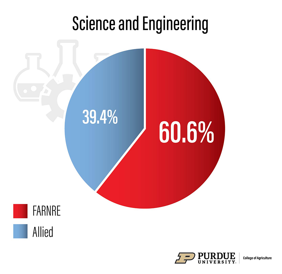 The Science and Engineering cluster includes the life, physical and social sciences and engineering occupations aligned with the production, transportation, processing and distribution of food and fiber, and roles at the interface of food science, human nutrition and health. It represents about 21% of openings.