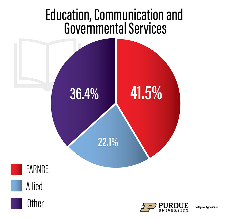 The Education, Communication and Governmental Services cluster includes educators, communicators and public relations specialists in the public and private sectors, with roles across local, state, national and international agencies. It represents about 19% of openings.