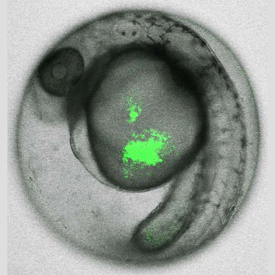 Neutrophil (red) recruitment and wound signal (NF-kB activation, green) in the wild type (upper) and miR-223 knockout (lower) 3 dpf larvae.